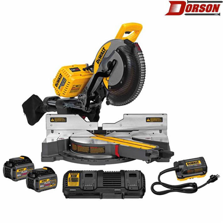 The DHS790AT2 offers flexible power options - corded for unlimited runtime or cordless for portability powered by DEWALT brushless motor technology. Accuracy is delivered through adjustable miter scale with 11 positive stops and high visibility bevel scale the CUTLINE(TM) blade positioning system. The kit includes 2 60V MAX* lithium ion battery packs, a dual port fast charger, and the DC120A corded power supply.
